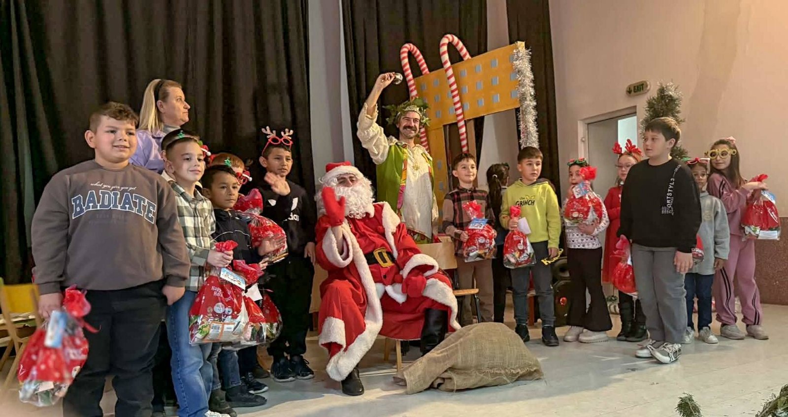 А кога се појави Дедо Мраз, радоста стана уште поголема – со многу љубов и топлина подели новогодишни пакетчиња за сите ученици.